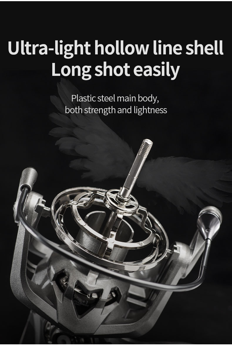 Compact self-balanced system rotors provide rock steady retrieve when landing big ones.