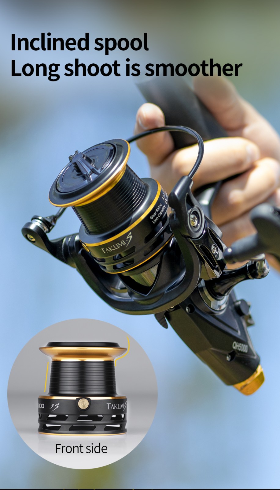 + Metal Inclined Spool: fast outgoing line, long shoot is smoother